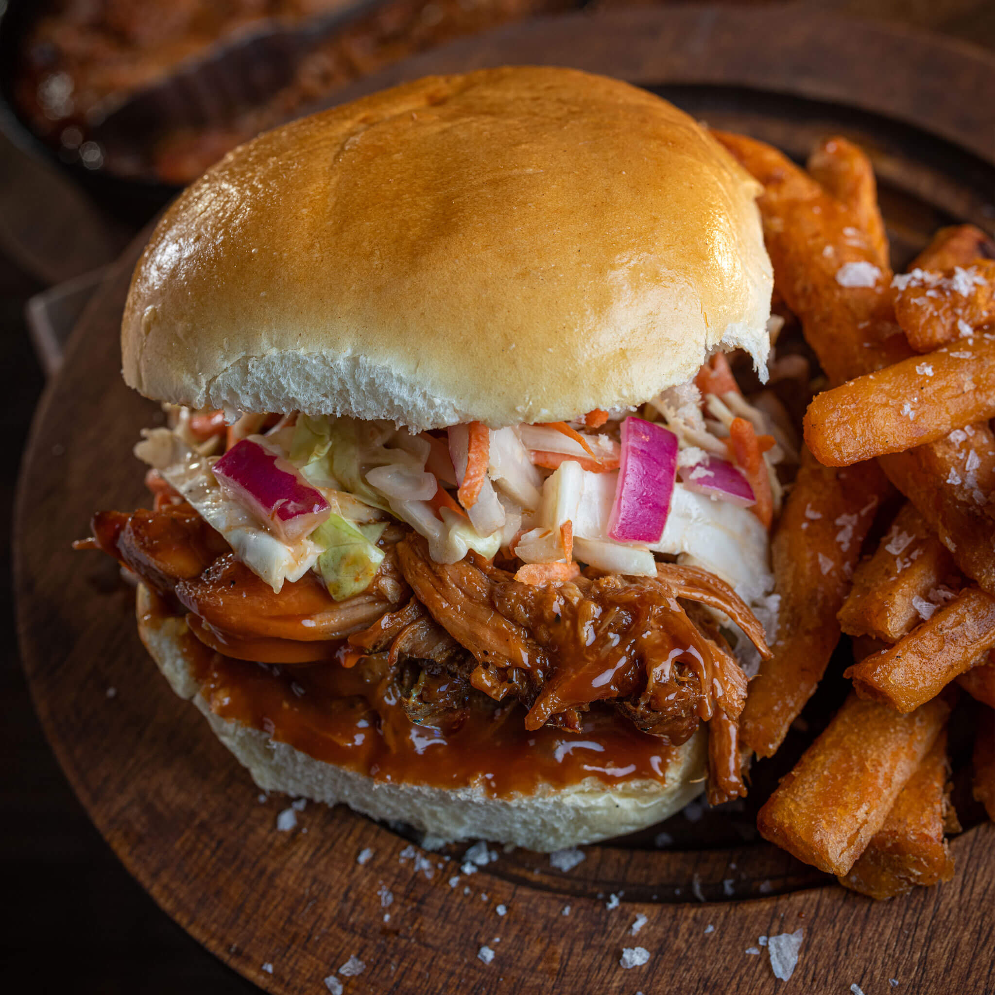 | Ingredients | Turkey, Barbecue Sauce {high fructose corn syrup, distilled vinegar, tomato paste, modified corn starch, contains less than 2% of: salt, pineapple juice concentrate, natural smoke flavor, spice, caramel color, molasses, sodium benzoate (preservative), dried garlic, mustard flour, corn syrup, sugar, tamarind, natural flavor, celery seed}, water, onion, celery, mesquite liquid smoke {water, mesquite smoke flavor, vinegar, molasses and caramel color}, butter (cream and salt), chicken base {chicken (including chicken fat, meat, and skins), sugar, salt, monosodium glutamate, onion powder, food starch-modified, potato flour, chicken flavor (contains maltodextrin, salt, corn oil, chicken skins, beef extract, ascorbic acid, and thiamine hydrochloride), spices, turmeric, natural flavor, disodium inosinate, and disodium guanylate}, onion salt, garlic salt, and spices. |